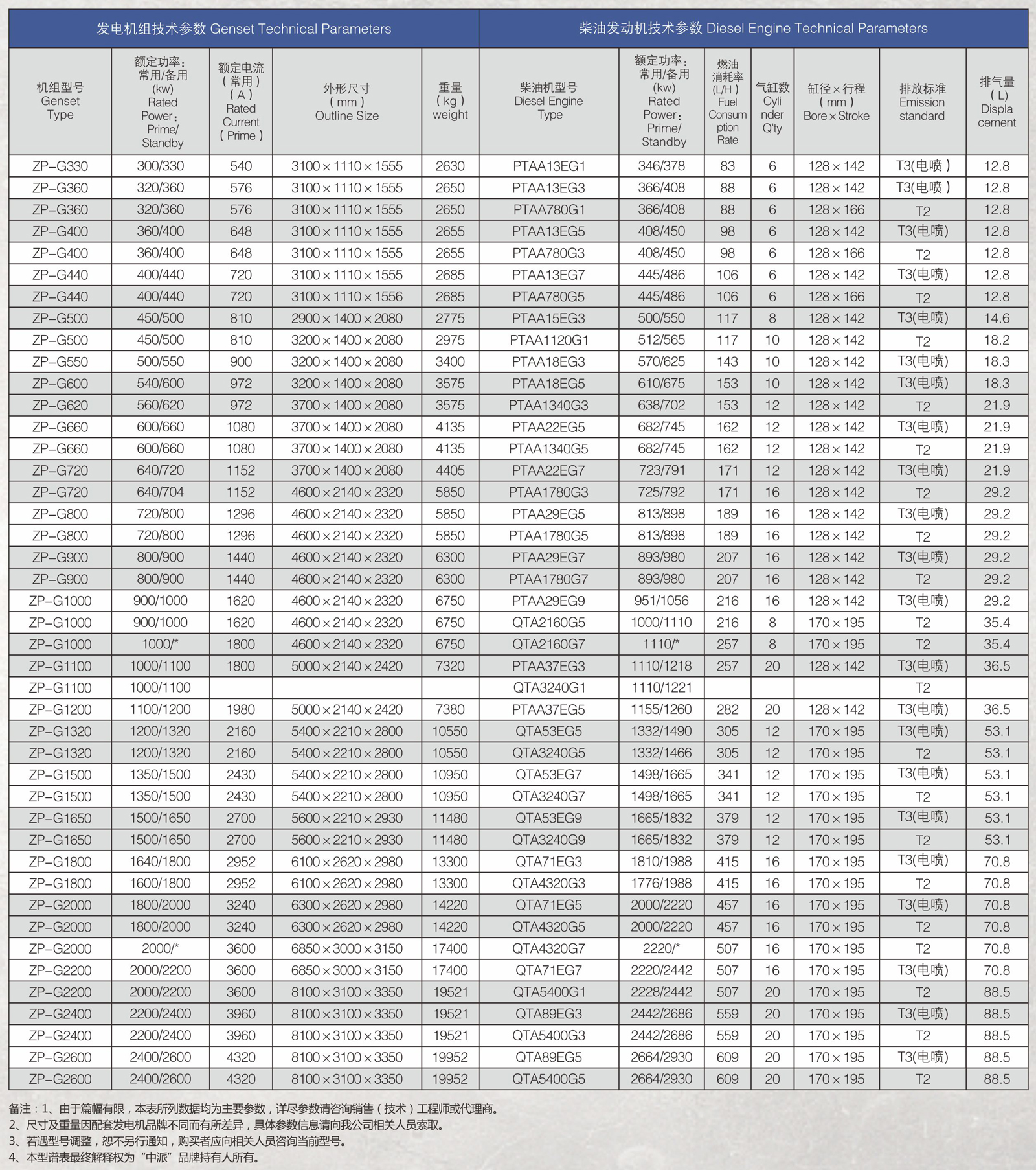 4、本型譜表最終解釋權(quán)為“中派”品牌持有人所有。