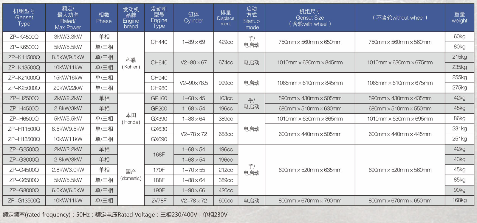 該系列汽油發(fā)電機組采用多種可定制化的發(fā)動機配置,可選知名國產(chǎn)品牌、合資或進口科勒、本田、雅馬哈等知名品牌。